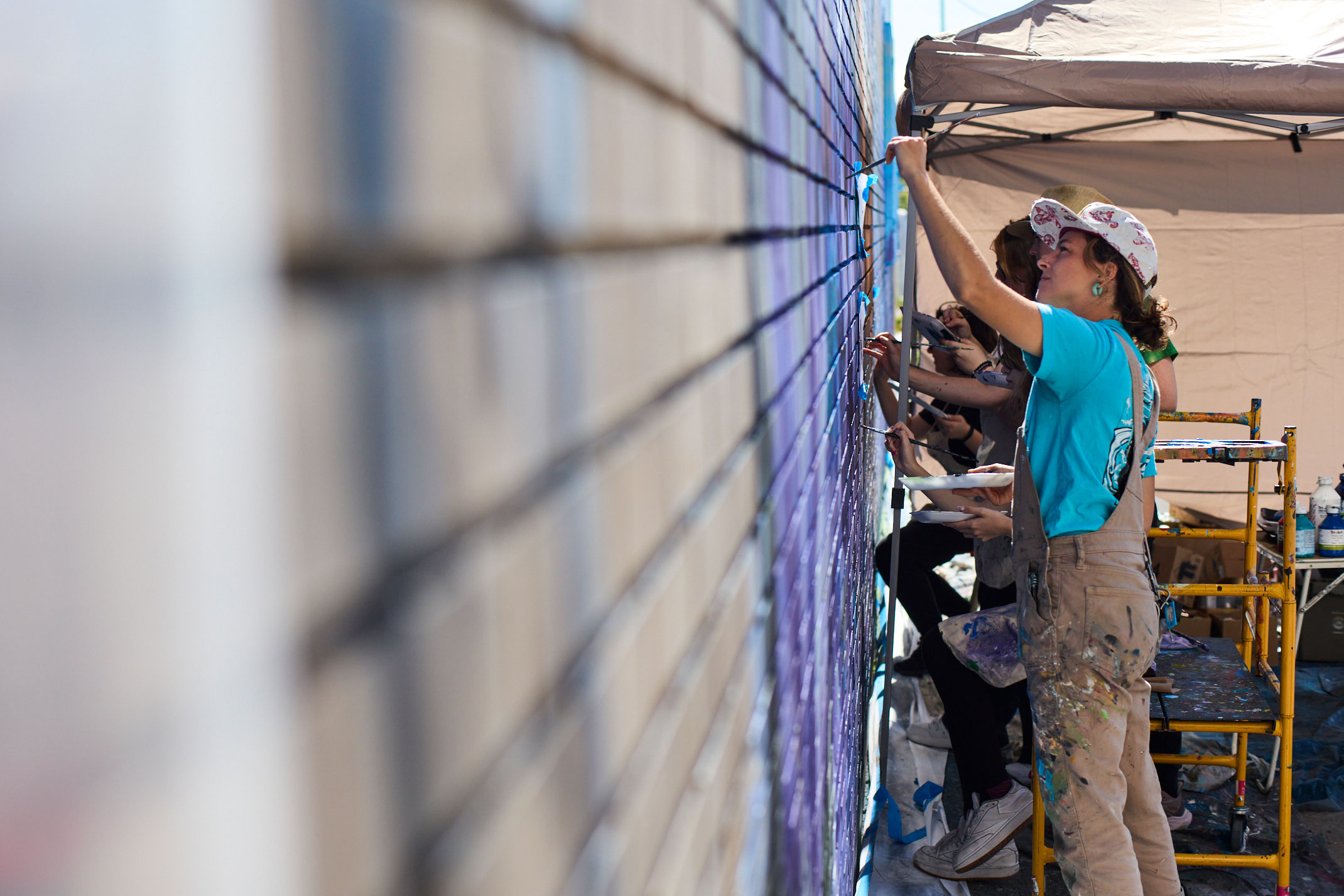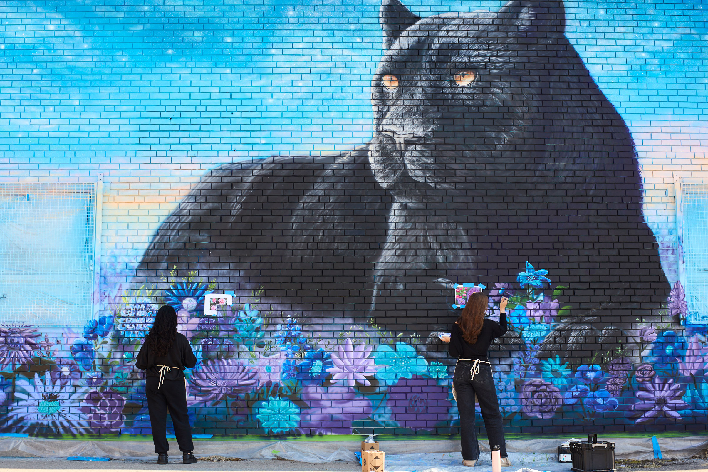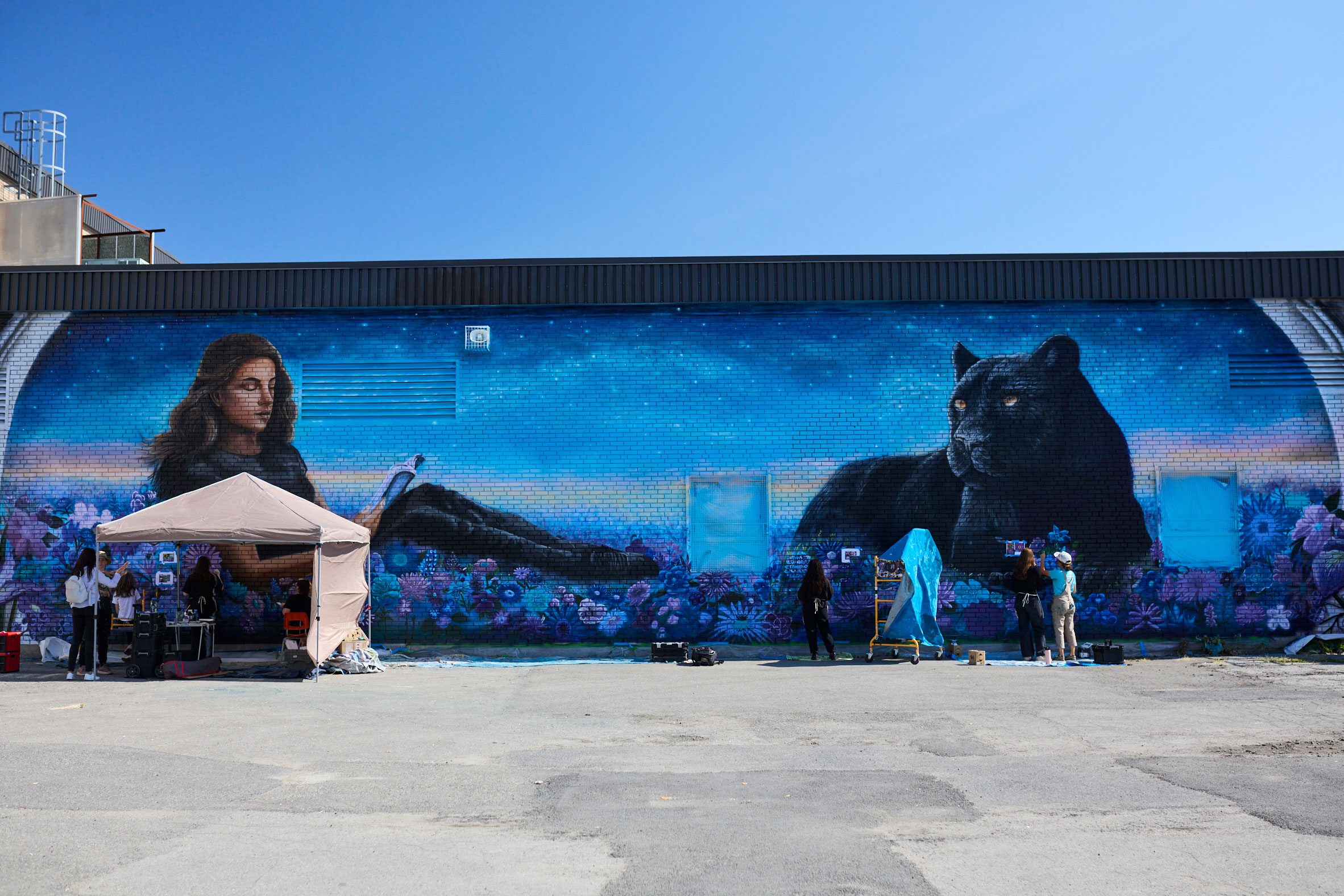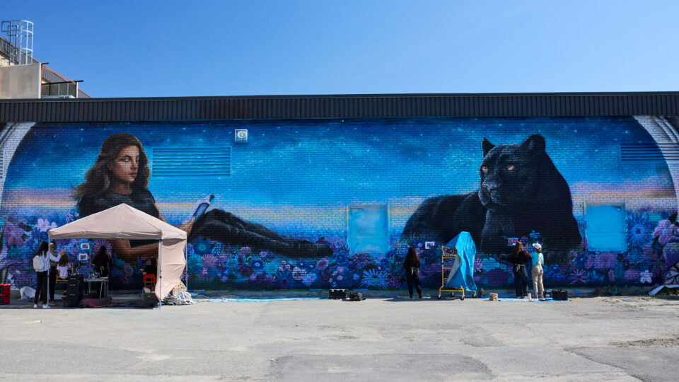 Murale collaborative Ici c’est Chomedey réalisée par la Lavalloise Émily Read
